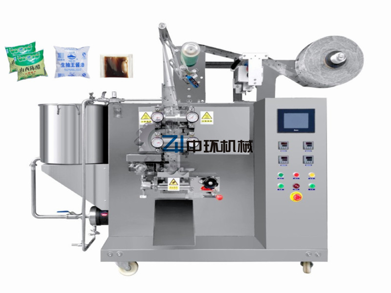 ZHY-339Y機械是針對低粘度液體物料實現自動包裝而設計的三對輥筒的包裝機械。該機可以實現三邊封口或四邊封口的包裝。